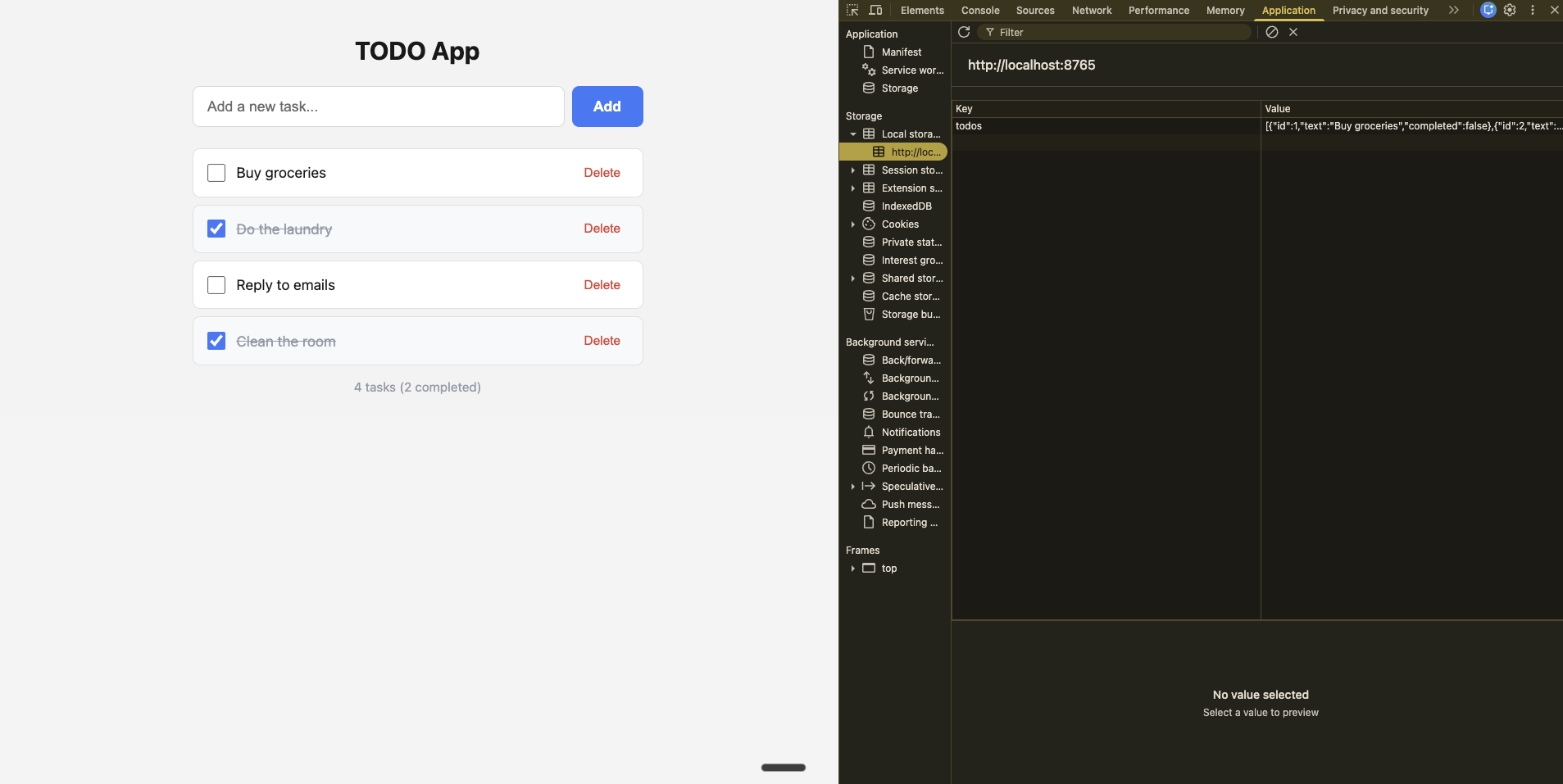 Close the browser and reopen it — all your TODOs are gone.
