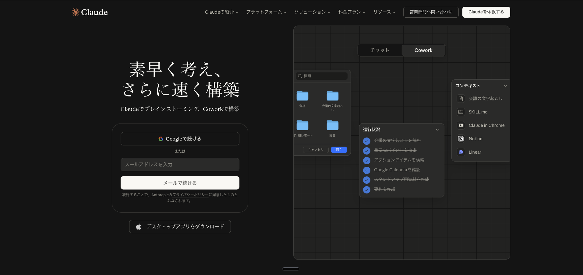 では実際にClaudeのアカウントを作ってみましょう。無料で使えるので安心してください。